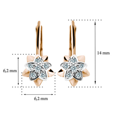 Detské náušnice Danfil kvetiny C2210 zo ružového zlata, Ruby Dark, zapínanie klapka