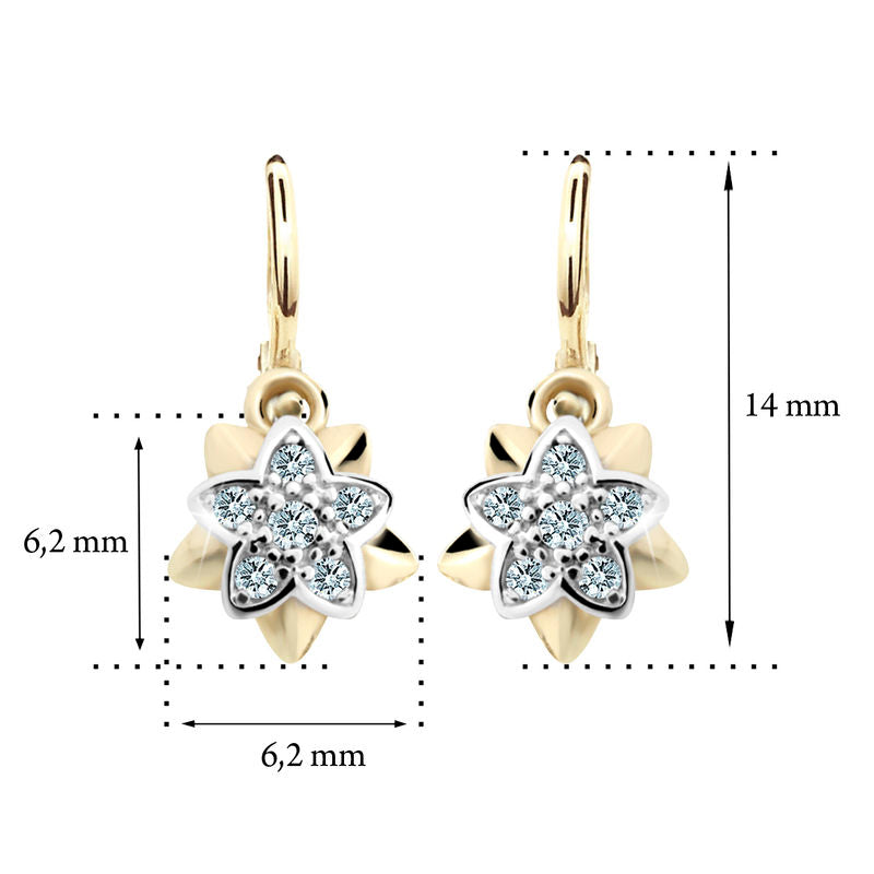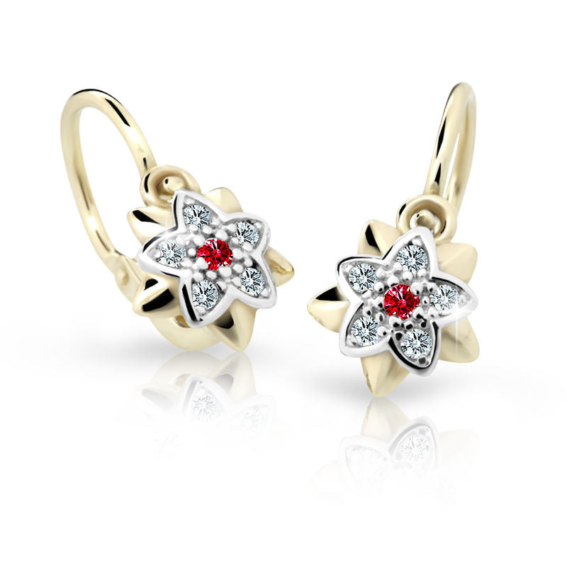 Detské náušnice Danfil kvetiny C2210 zo žltého zlata, Ruby Dark, zapínanie brizura