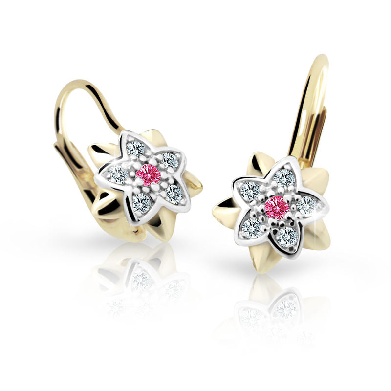 Detské náušnice Danfil kvetiny C2210 zo žltého zlata, Tcf Red, zapínanie klapka