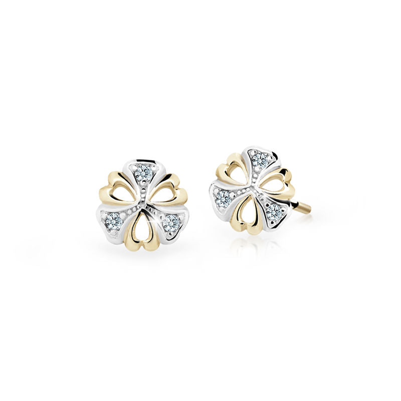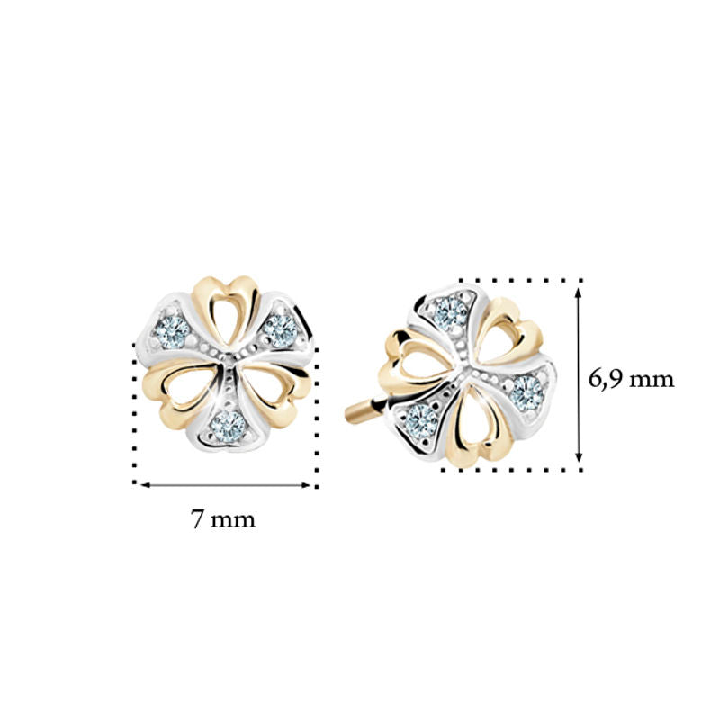 Detské náušnice Danfil kvetiny C2230 zo žltého zlata, White, zapínanie puzeta