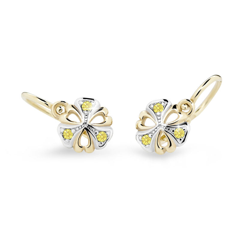 Detské náušnice Danfil kvetiny C2230 zo žltého zlata, Yellow, zapínanie brizura
