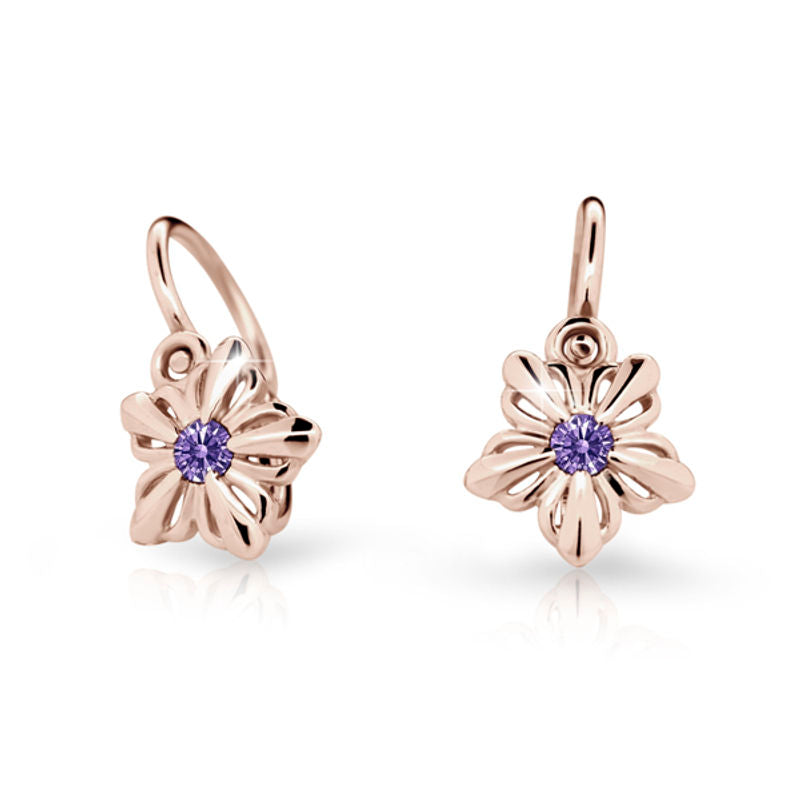 Detské náušnice Danfil kvetiny C2238 zo ružového zlata, Amethyst, zapínanie brizura