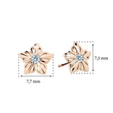Detské náušničky v tvare kvetinky so zapínaním typu balónik sú vyrobené z ružového 14k zlata a osadené svetlo ružovými zirkónmi. Zapínanie je vhodné až od 6 mesiacov. Všetky rozmery sú podrobne rozkreslené na podpornej fotografii. Ku každým náušničkám je možné vybrať si aj ladiaci prívesok s retiazkou.