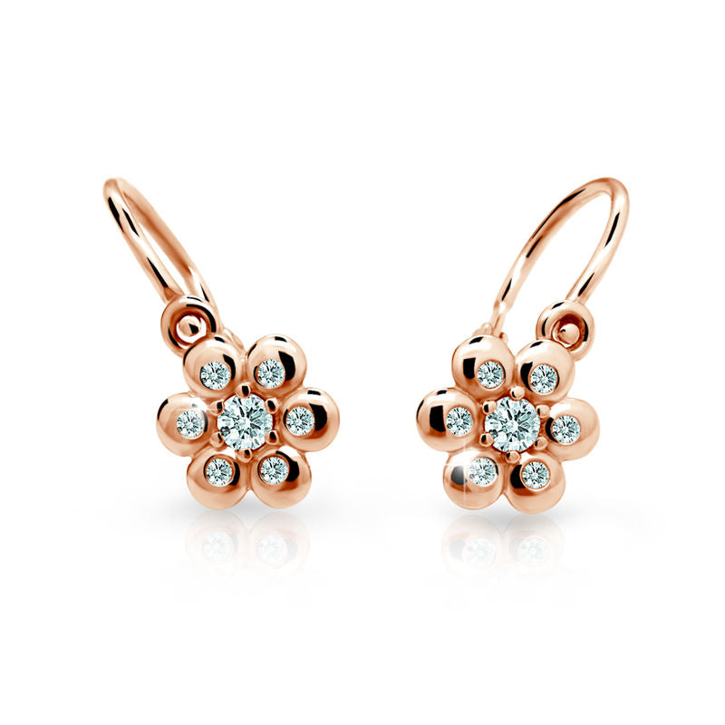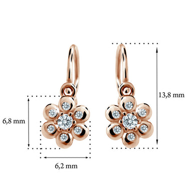 Detské náušnice Danfil kvetiny C2247 zo ružového zlata, White, zapínanie brizura