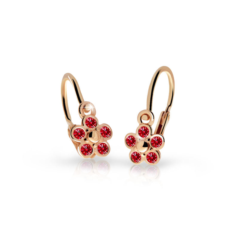 Detské náušnice Danfil kvetiny C2744 zo ružového zlata, Ruby Dark, zapínanie brizura
