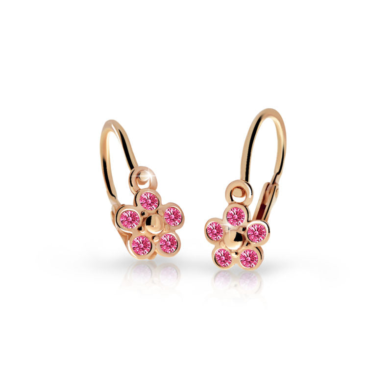 Detské náušnice Danfil kvetiny C2744 zo ružového zlata, Tcf Red, zapínanie brizura
