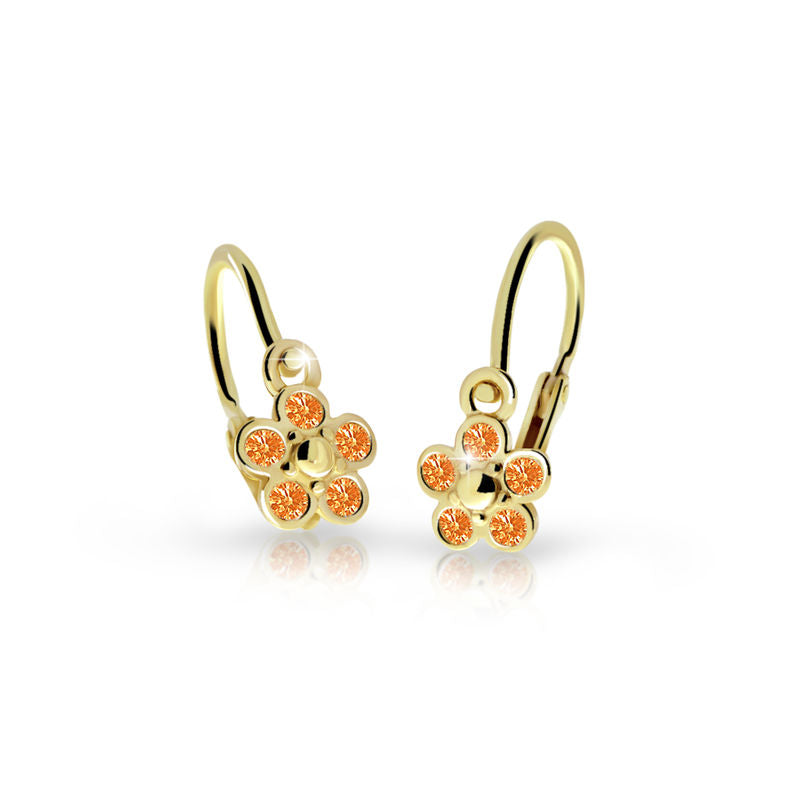 Detské náušnice Danfil kvetiny C2744 zo žltého zlata, Orange, zapínanie brizura