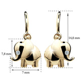 Detské náušničky v tvare slona so zapínaním typu brizúra sú vyrobené z žltého 14k zlata a osadené bielymi kamienkami. Zlaté náušnice majú puncovú značku 585/1000 od štátneho puncového úradu. Tento typ zapínania považujeme za jeden z najbezpečnejších a je najvhodnejší ako prvé náušničky pre bábätko. Všetky rozmery sú podrobne rozkreslené na podpornej fotografii. Ku každým náušničkám je možné vybrať si aj ladiaci prívesok s retiazkou.