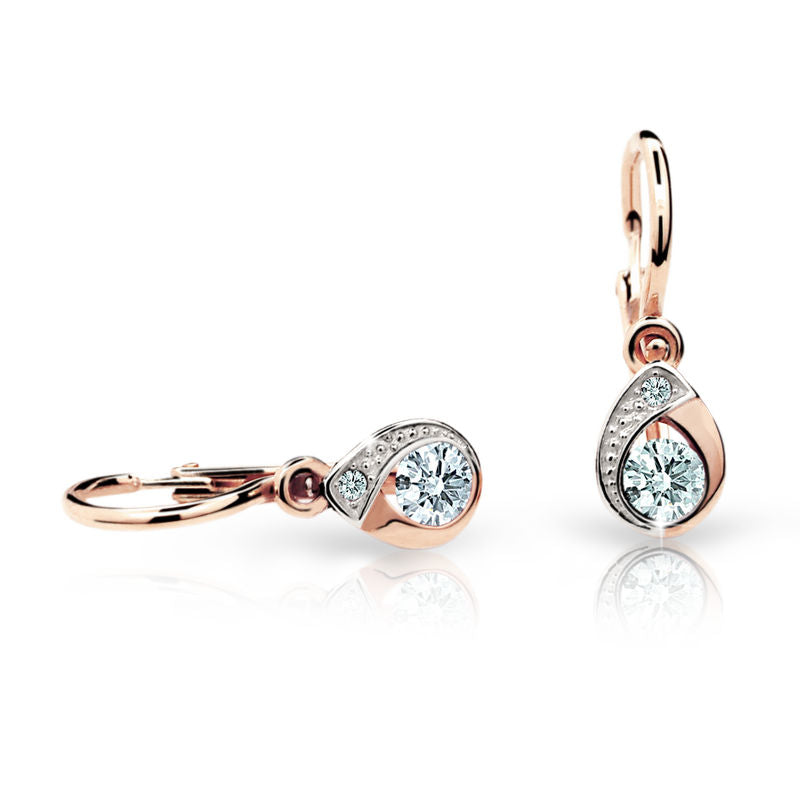 Detské náušnice Danfil slzičky C1898 zo ružového zlata, White, zapínanie brizura