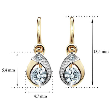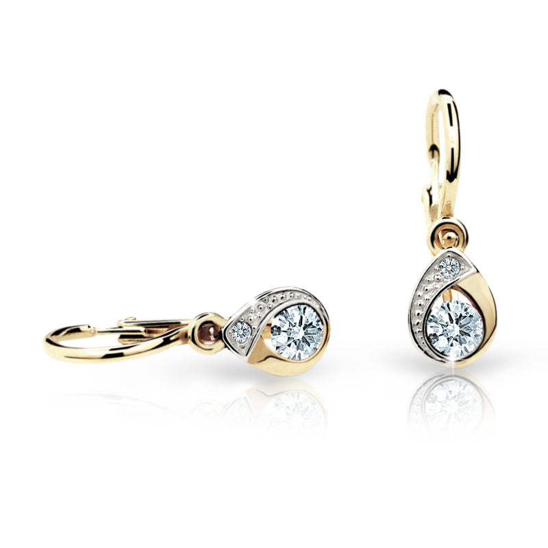 Detské náušnice Danfil slzičky C1898 zo žltého zlata, White, zapínanie brizura