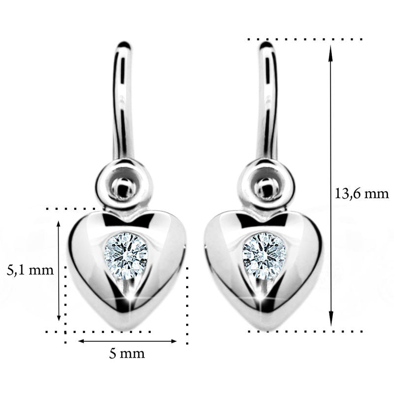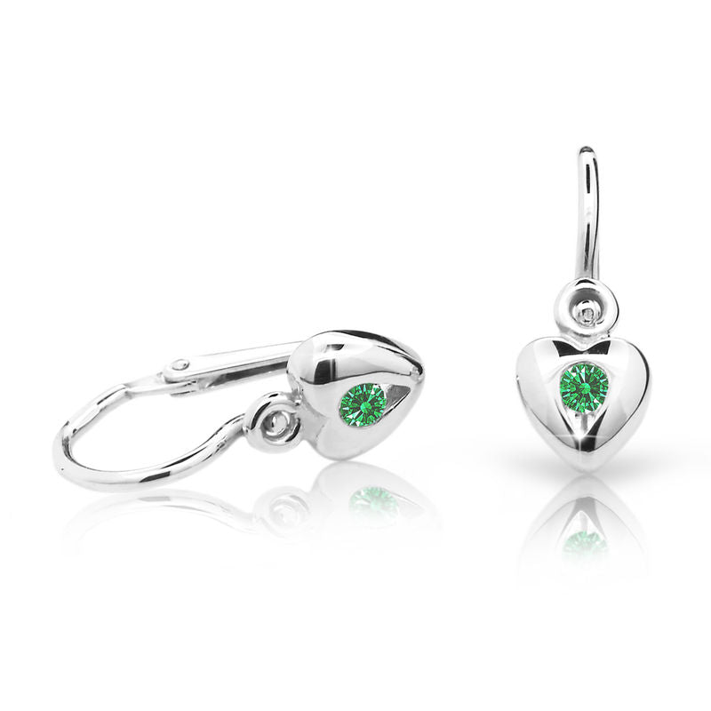 Detské náušnice Danfil srdiečka C1556 z bieleho zlata, Emerald Green, zapínanie brizura