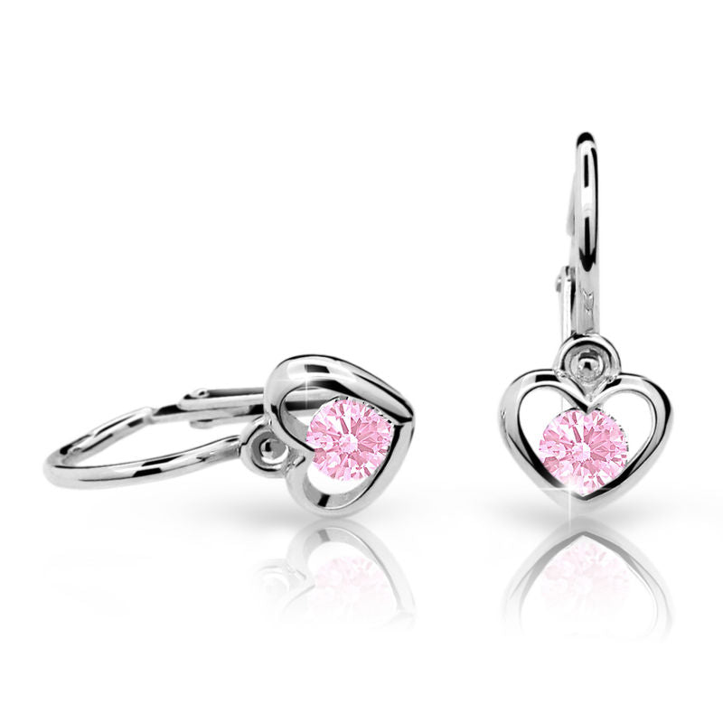 Detské náušnice Danfil srdiečka C1943 z bieleho zlata, Pink, zapínanie brizura