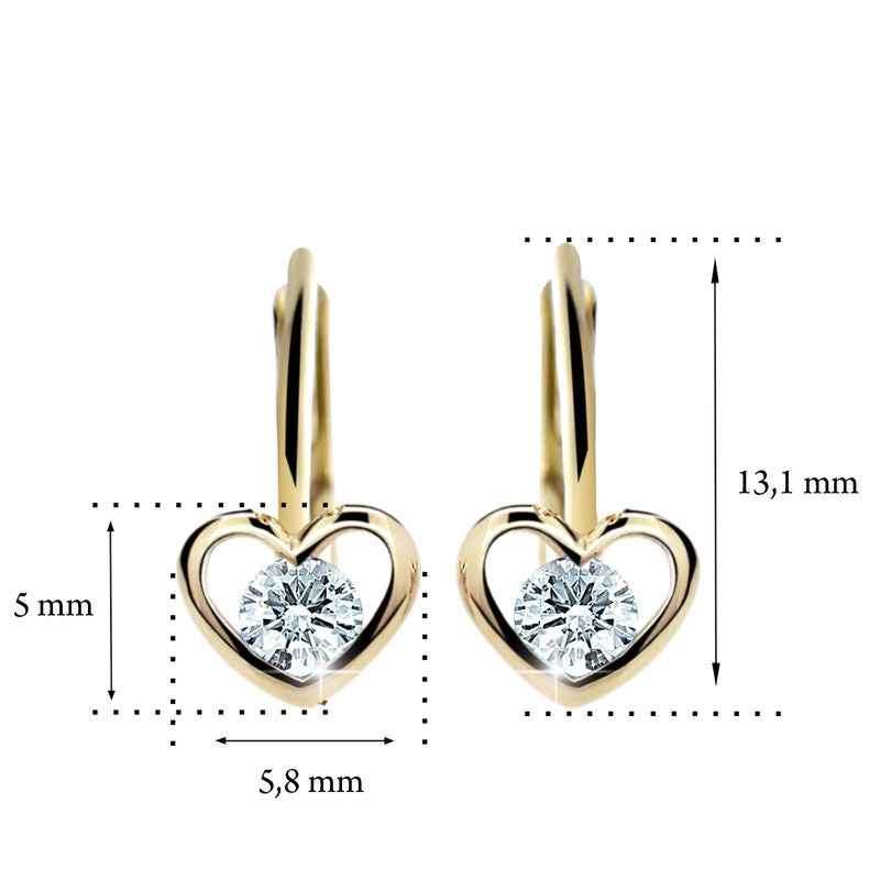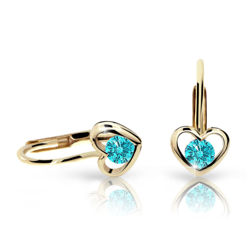 Detské náušnice Danfil srdiečka C1943 zo žltého zlata, Mint Green, zapínanie klapka