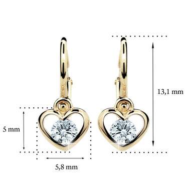 Detské náušnice Danfil srdiečka C1943 zo žltého zlata, White, zapínanie brizura