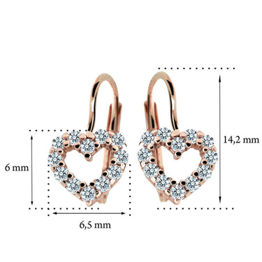 Detské náušnice Danfil srdiečka C2157 zo ružového zlata, Pink, zapínanie klapka