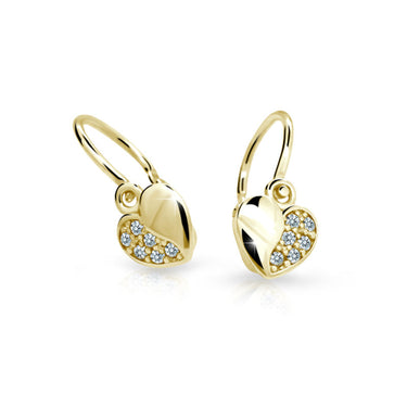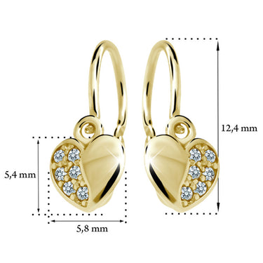 Detské náušnice Danfil srdiečka C2160 zo žltého zlata, White, zapínanie brizura