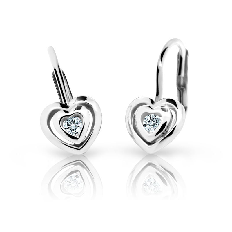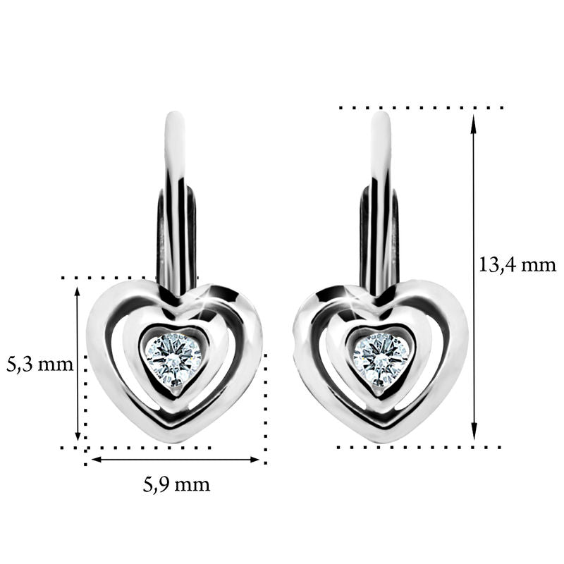 Detské náušnice Danfil srdiečka C2177 z bieleho zlata, White, zapínanie klapka