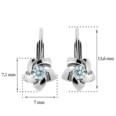 Detské náušničky v tvare klasik so zapínaním typu klapka sú vyrobené z bieleho 14k zlata a osadené fialovými zirkónmi. Zlaté náušnice majú puncovú značku 585/1000 od štátneho puncového úradu. Tento typ zapínania považujeme za jeden z najbezpečnejších a je najvhodnejší pre malé slečny vo veku od cca 5 rokov. Na tento typ zapínania je možné za príplatok umiestniť bezpečnosťou poistky. Všetky rozmery sú podrobne rozkreslené na podpornej fotografii. Ku každým náušničkám je možné vybrať si aj ladiaci prívesok s retiazkou.