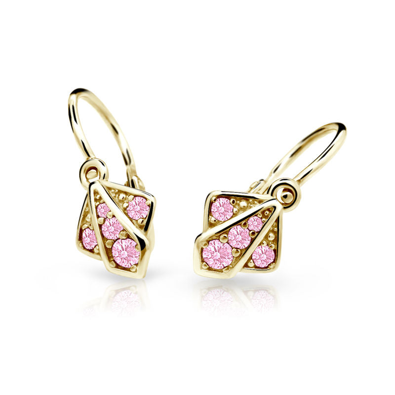 Detské náušničky Danfil C2241 zo žltého zlata s kamienkami Pink