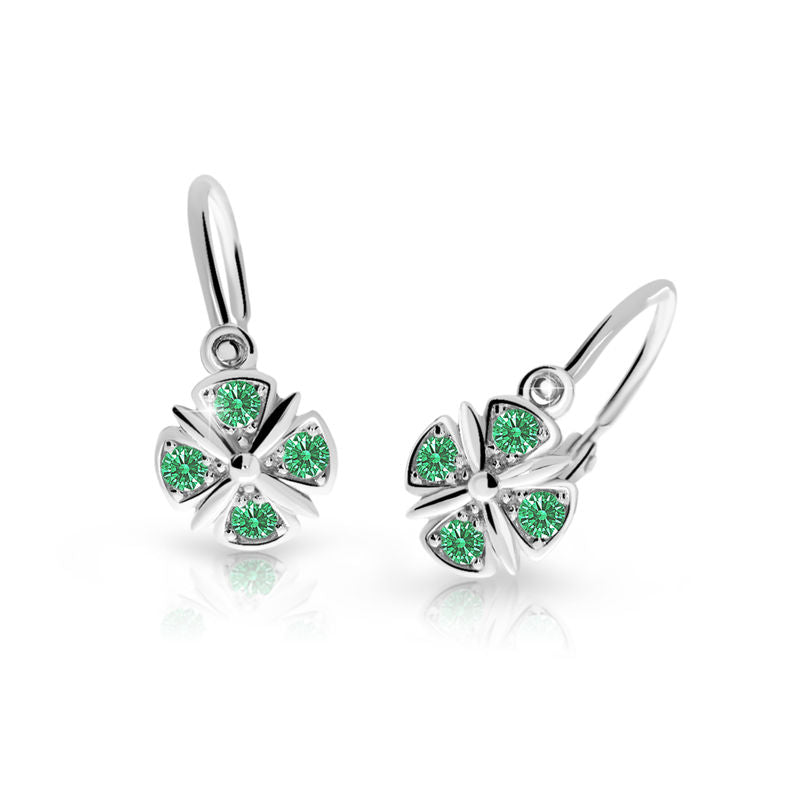 Detské náušničky Danfil C2245 z bieleho zlata s kamienkami Emerald Green