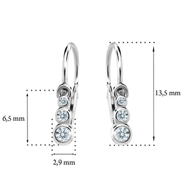Originálne detské náušnice vyrobené zo 14 karátového bieleho zlata, vynikajú svojím nadčasovým dizajnom a dokreslí pôvab každé malé dievčatká. Zapínanie brizura je ideálnou voľbou pre bábätká. Náušničky sú balené v pôvabnej darčekovej krabičke v tvare pyramídky.