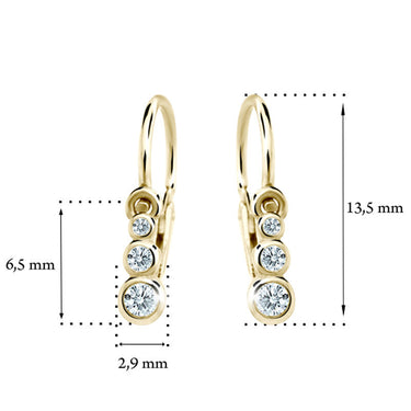Originálne detské náušničky vyrobené zo 14 karátového žltého zlata, vynikajú svojím nadčasovým dizajnom a dokreslí pôvab každé malé dievčatká. Zapínanie brizura je ideálnou voľbou pre bábätká. Náušničky sú balené v pôvabnej darčekovej krabičke v tvare pyramídky.