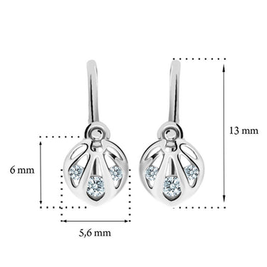 Detské náušničky v tvare klasik so zapínaním typu brizúra sú vyrobené z bieleho 14k zlata a osadené fialovými zirkónmi. Tento typ zapínania považujeme za jeden z najbezpečnejších a je najvhodnejší ako prvé náušničky pre bábätko. Všetky rozmery sú podrobne rozkreslené na podpornej fotografii. Ku každým náušničkám je možné vybrať si aj ladiaci prívesok s retiazkou.