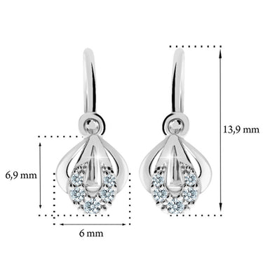 Detské náušničky v tvare klasik so zapínaním typu brizúra sú vyrobené z bieleho 14k zlata a osadené červenými zirkónmi. Tento typ zapínania považujeme za jeden z najbezpečnejších a je najvhodnejší ako prvé náušničky pre bábätko. Všetky rozmery sú podrobne rozkreslené na podpornej fotografii. Ku každým náušničkám je možné vybrať si aj ladiaci prívesok s retiazkou.