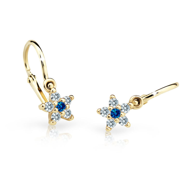 Detské náušničky Danfil hviezdičky C2118 zo žltého zlata s kamienkom Dark Blue