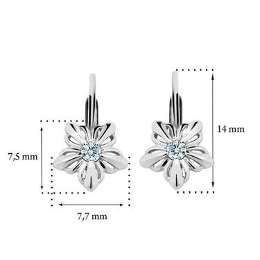Detské náušničky Danfil kvetinky C2238 z bieleho zlata s kamienkom Arctic Blue