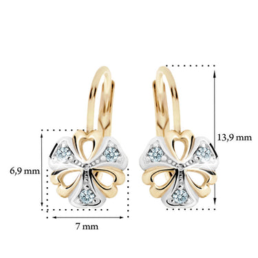 Detské náušničky Danfil kytičky C2230 zo žltého zlata s kamienkami Tcf Red