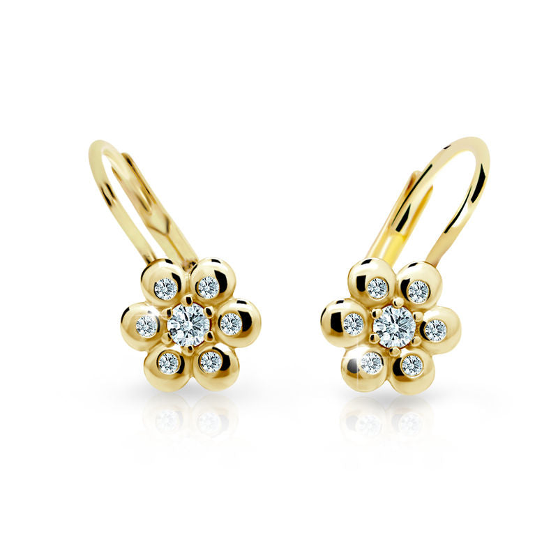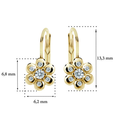 Detské náušničky Danfil kytičky C2247 zo žltého zlata s kamienkami White
