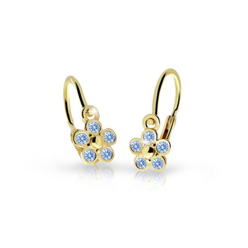 Detské náušničky Danfil kytičky C2744 zo žltého zlata s kamienkami Arctic Blue