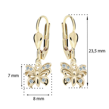 Detské náušničky Danfil motýliky C2226 zo žltého zlata s kamienkami White, zapínanie klapka