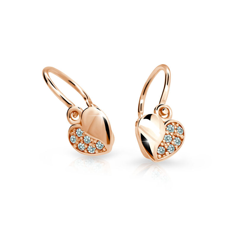 Detské náušničky Danfil srdiečka C2160 z ružového zlata s kamienkami White, zapínanie brizura