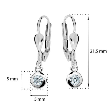 Detské náušničky v tvare klasik so zapínaním typu visacia klapka sú vyrobené z bieleho 14 k zlata a osadené tyrkysovými kamienkami. Zlaté náušnice majú puncovú značkou 585/1000 od štátneho puncového úradu. Tento typ zapínania považujeme za jeden z najbezpečnejších. Na tento typ zapínania je možné za príplatok umiestniť bezpečnosťou poistky. Všetky rozmery sú podrobne rozkreslené na podpornej fotografii. Ku každým náušničkám je možné vybrať si aj ladiaci prívesok s retiazkou.