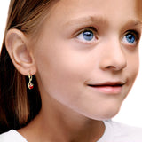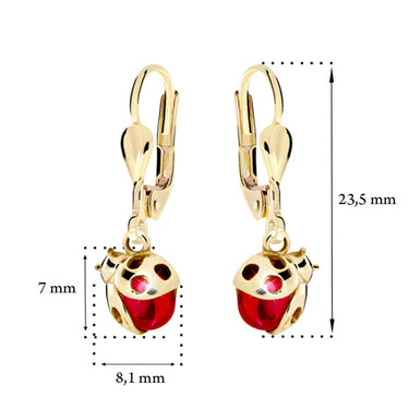Detské visiace náušnice Danfil C2008 lienky zo žltého zlata, Ruby Dark, zapínanie klapka