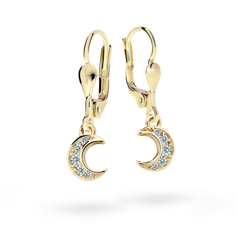 Detské visiace náušnice Danfil C2162 zo žltého zlata, White, zapínanie klapka