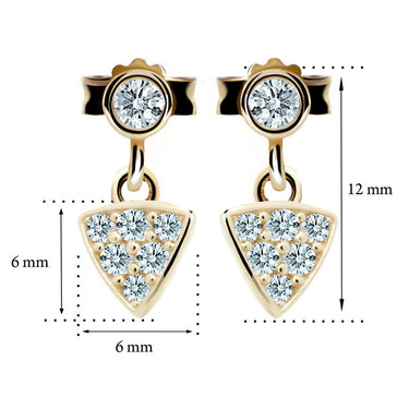 Detské visiace náušnice Danfil C2207 zo žltého zlata, White, zapínanie puzeta