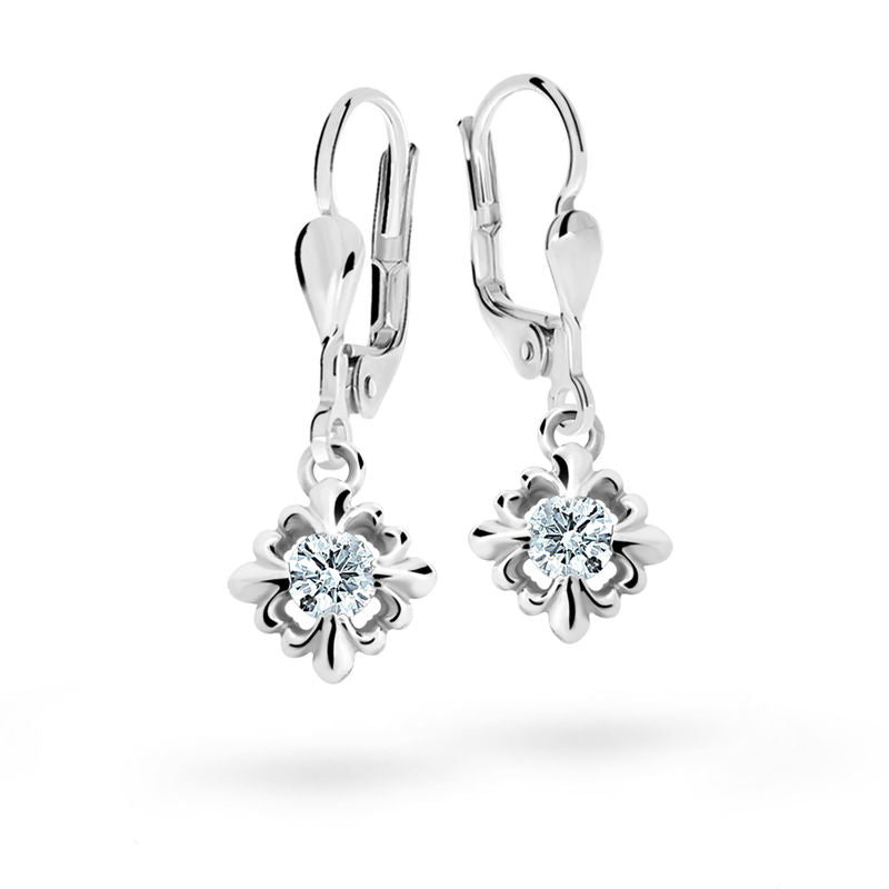Detské visiace náušnice Danfil C2212 z bieleho zlata, White, zapínanie klapka
