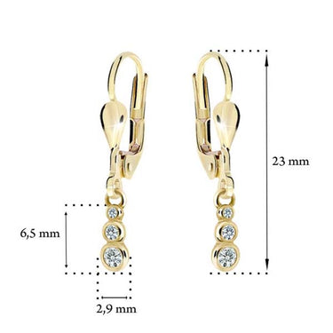 Detské visiace náušnice Danfil C2255 zo žltého zlata, Pink, zapínanie klapka