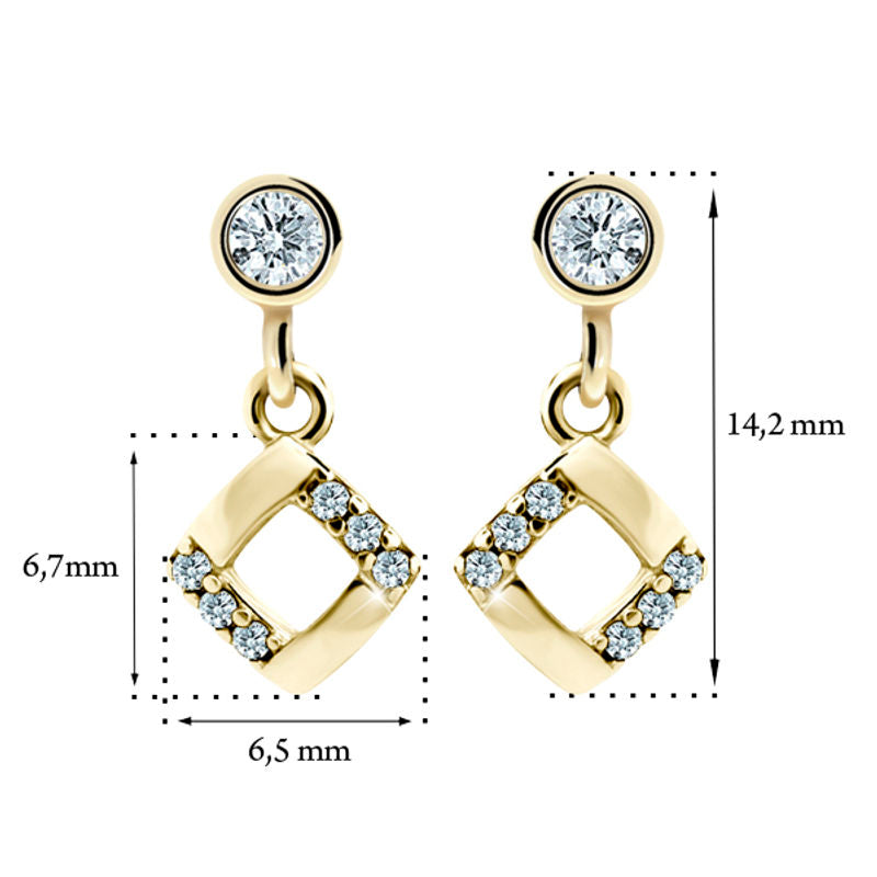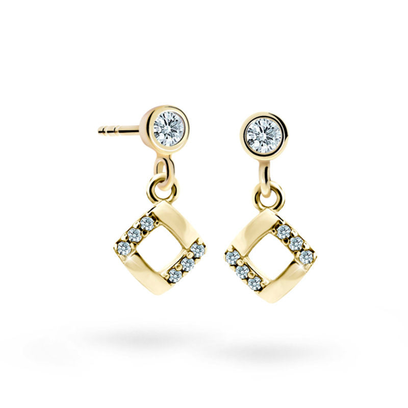 Detské visiace náušnice Danfil C2268 zo žltého zlata, White, zapínanie puzeta