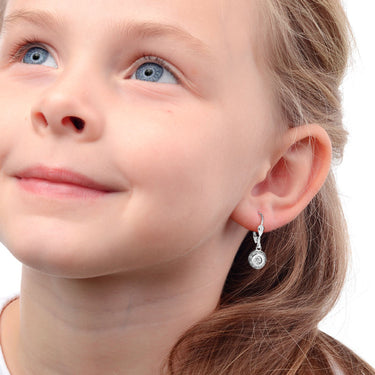 Detské náušničky v tvare klasik so zapínaním typu visacia klapka sú vyrobené z bieleho 14 k zlata a osadené tyrkysovými zirkónmi. Zlaté náušnice majú puncovú značkou 585/1000 od štátneho puncového úradu. Tento typ zapínania považujeme za jeden z najbezpečnejších. Na tento typ zapínania je možné za príplatok umiestniť bezpečnosťou poistky. Všetky rozmery sú podrobne rozkreslené na podpornej fotografii. Ku každým náušničkám je možné vybrať si aj ladiaci prívesok s retiazkou.