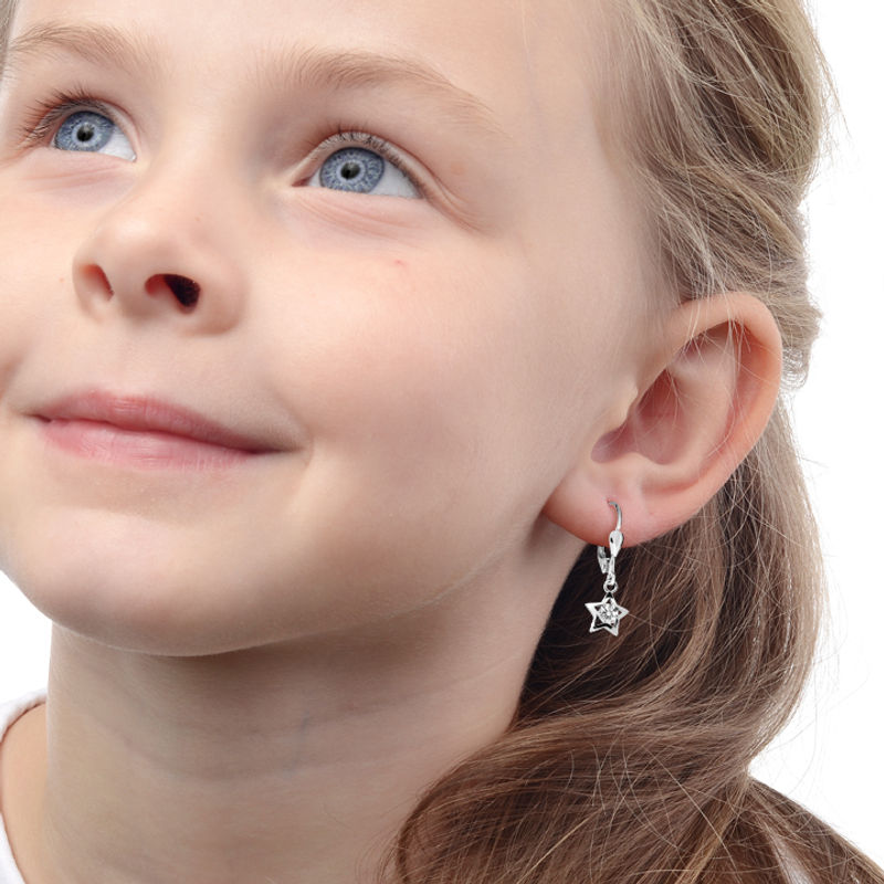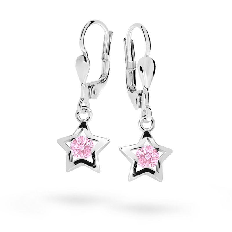 Detské visiace náušnice Danfil hviezdičky C1942 z bieleho zlata, Pink, zapínanie klapka