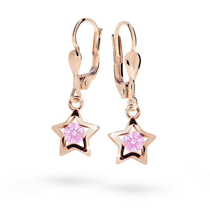 Detské visiace náušnice Danfil hviezdičky C1942 zo ružového zlata, Pink, zapínanie klapka