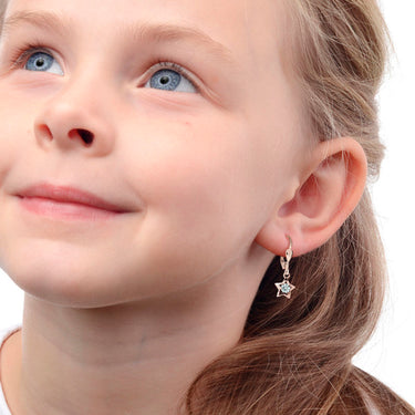 Detské náušničky v tvare hviezdičky so zapínaním typu visacia klapka sú vyrobené z ružového 14 k zlata a osadené svetlo ružovými kamienkami. Zlaté náušnice majú puncovú značkou 585/1000 od štátneho puncového úradu. Tento typ zapínania považujeme za jeden z najbezpečnejších. Na tento typ zapínania je možné za príplatok umiestniť bezpečnosťou poistky. Všetky rozmery sú podrobne rozkreslené na podpornej fotografii. Ku každým náušničkám je možné vybrať si aj ladiaci prívesok s retiazkou.