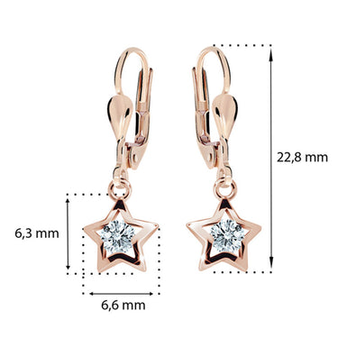 Detské visiace náušnice Danfil hviezdičky C1942 zo ružového zlata, White, zapínanie klapka