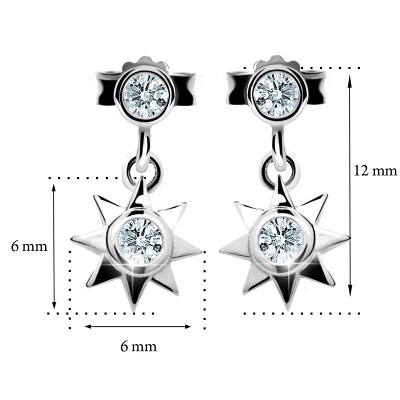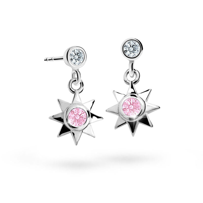 Detské visiace náušnice Danfil hviezdičky C1995 z bieleho zlata, Pink, zapínanie puzeta