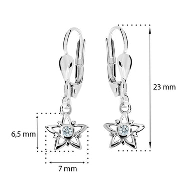 Detské visiace náušnice Danfil hviezdičky C1996 z bieleho zlata, Peridot Green, zapínanie klapka