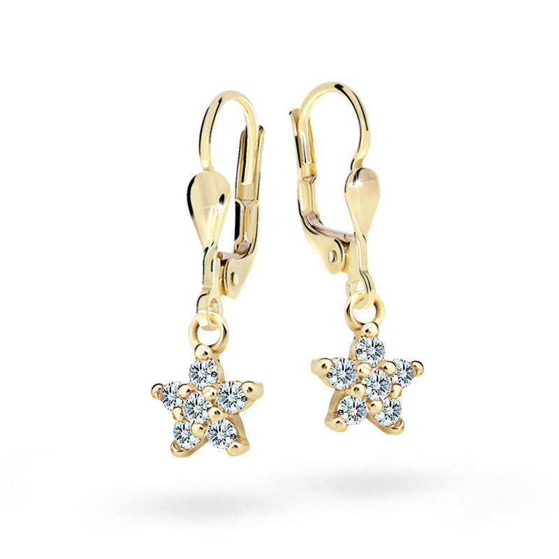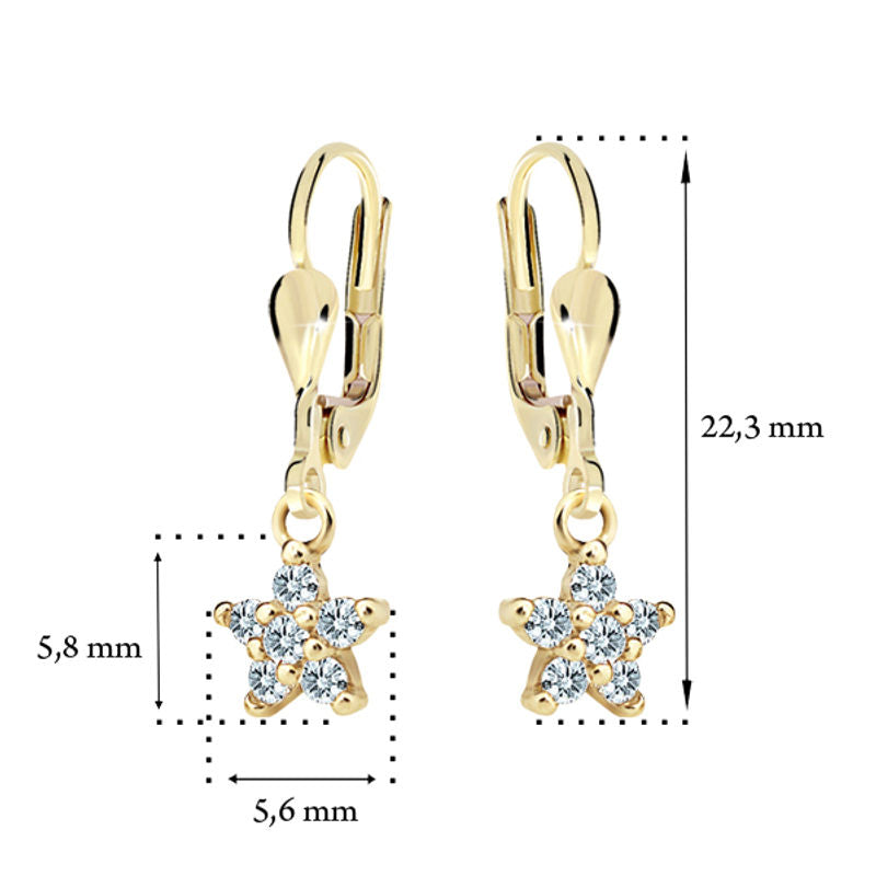 Detské visiace náušnice Danfil hviezdičky C2118 zo žltého zlata, White, zapínanie klapka